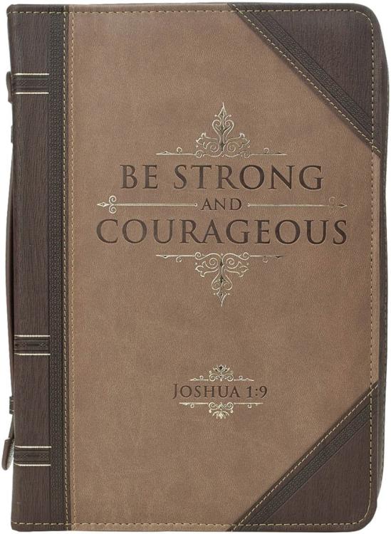 Abundant with texture and detail~ the Be Strong and Courageous Portfolio Design Faux Leather Classic Bible Cover has the look and feel of an antique book.