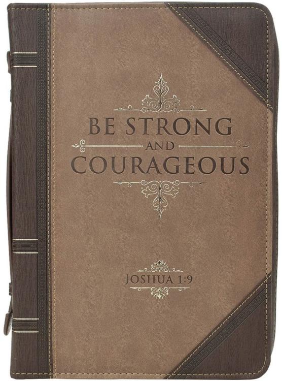 Abundant with texture and detail~ the Be Strong and Courageous Portfolio Design Faux Leather Classic Bible Cover has the look and feel of an antique book.