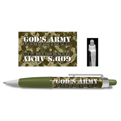Comfortable grip with retractable parker style refill. Full color inspirational barrel designs with cross on pocket clip.