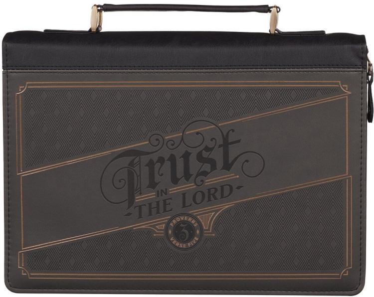 The Trust in the Lord Charcoal Faux Leather Bible Cover will protect your Bible from everyday wear and tear and be a constant reminder to lean on God’s love~ power~ and wisdom~ no matter what life throws your way. This boldly displayed message on the Bible case~ sets a positive and reflective tone for each study session~ encouraging you to trust in the LORD with every page you turn.”