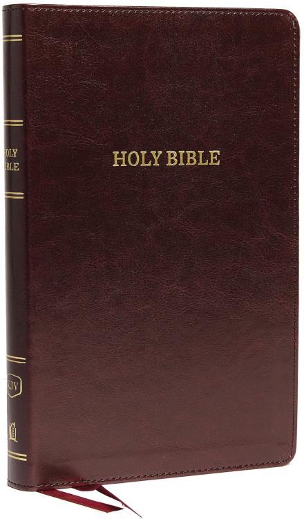 The literary beauty of the King James Version, handy and easy to carry, with the readability of Thomas Nelson’s custom KJV font. The slim design of the KJV Deluxe Thinline Reference Bible means you can bring it along, wherever your day takes you. And with features like a center-column reference system, book introductions, a concordance, words of Christ in red, and full-color maps, you’ll have the tools you need to get more out of God’s Word without having to pack more.
