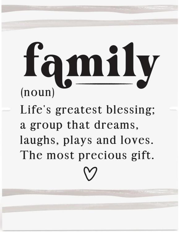 *Features the sentiment “Family Noun Life’s Greatest Blessing A Group That Dreams Laughs