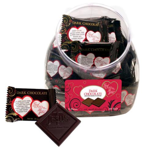 Rich, smooth, dark chocolate is individually wrapped in the God So Loved Me That He Gave Me You theme and a love scripture. Treat yourself or your loved ones to this delicious chocolate. Proudly made in the U.S.A.
