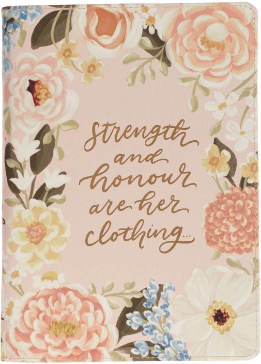 The distinctly feminine design of the Strength and Honor Pink Floral Faux Leather Classic Journal with Zipper Closure bursts with colorful blooms that radiate elegance and charm. It also has a zipper closure to store all your notes securely.