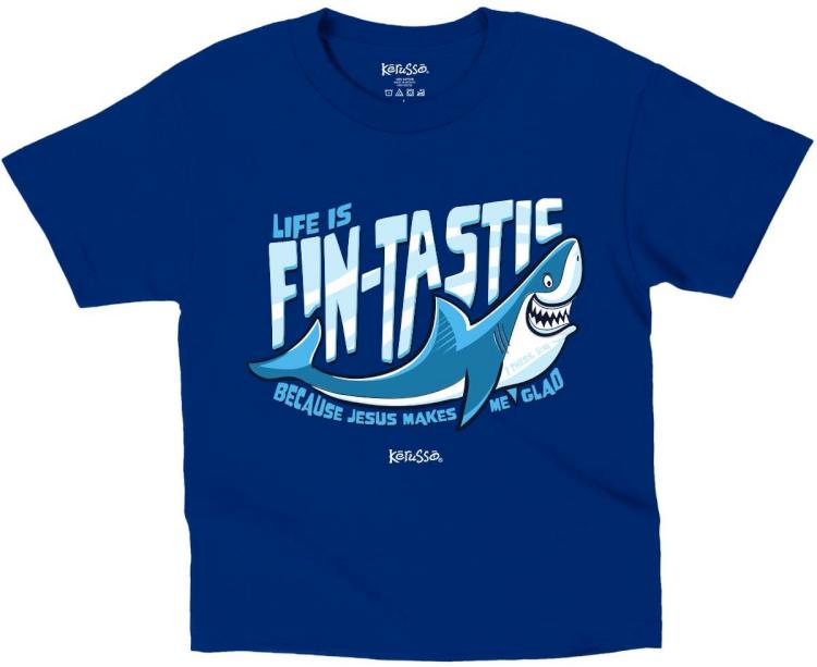 “Fintastic Share a toothy grin in this cool Fintastic Kerusso Kidz T-Shirt in Royal Blue. Kids can choose joy even when times are tough, knowing Jesus is with us, and has a plan for our lives.Kids can share a positive attitude and the Good News about Jesus with their friends, at school, and everywhere they go. A cheeky T-shirt like this one is breathable, comfortable, and an awesome way to let the world know they love Jesus. Change your shirt, and you can change the world kids included.
