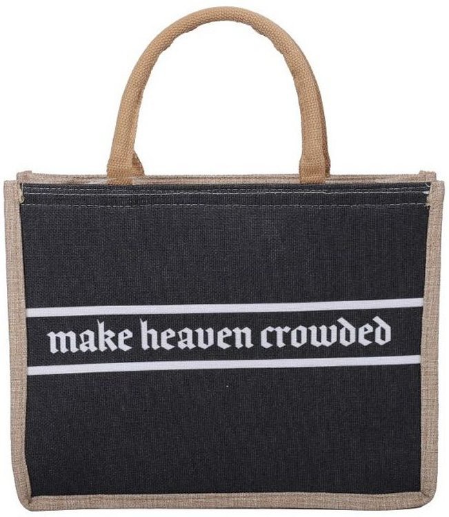 *Sturdy black canvas with minimalist white lettering: make heaven crowded
