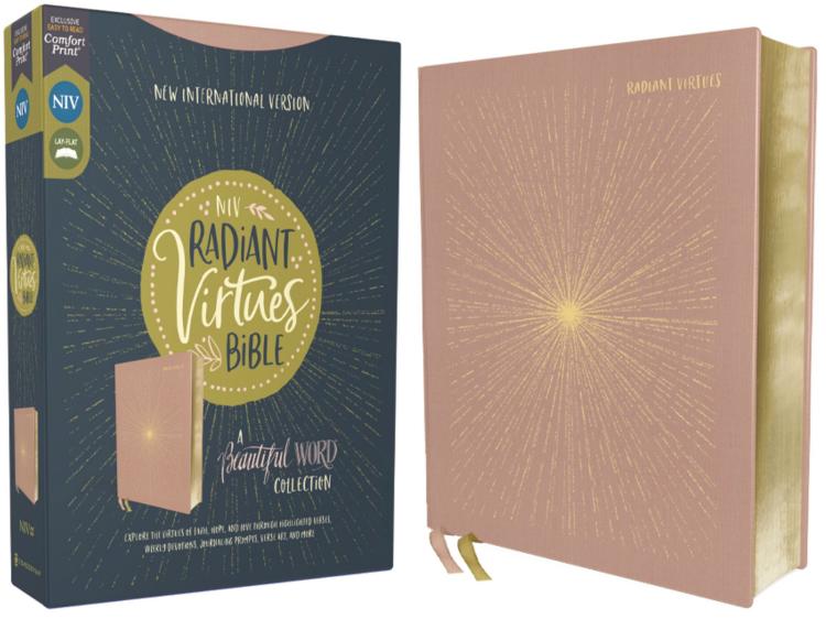 Explore the Virtues of Faith, Hope, and Love with the NIV Radiant Virtues Bible, a Beautiful Word Collection.Faith, hope, and love-the three virtues found in 1 Corinthians 13-are at the heart of the NIV Radiant Virtues Bible, inviting you to discover how they are woven through both the stories of the Bible and your own life. Art from the Beautiful Word collection, along with newly created verse art, all-new journaling prompts, weekly devotional readings and prayers, coloring pages, a reading plan, and more, guide you as you explore each virtue and its place in Scripture. Use the calendar pages in the front of the Bible, along with the 52-week guide, to travel through the Bible. Along the way, you’ll find key verse illustrations at the start of each book of the Bible, as well as highlighted verses to draw your attention to passages related to the virtues of faith, hope, and love, helping you see these themes throughout God’s Word. The ample journaling space offers plenty of room to record your own thoughts, reflections, and art. Perforated pages in the back of the Bible feature meaningful verses, allowing you to gift them to someone else or use them for your own daily inspiration. From beginning to end, the NIV Radiant Virtues Bible gives you everything you need to discover how the timeless virtues of faith, hope, and love relate to your daily life.As you read, enjoy a smooth reading experience with Zondervan’s exclusive NIV Comfort Print typeface, allowing you to extend your quiet time. Expertly designed for the New International Version (NIV) text, Zondervan NIV Comfort Print typeface delivers a smooth reading experience that complements the most widely read contemporary English Bible translation.Features:Full text of the accurate, readable, and clear New International Version (NIV)Hundreds of highlighted Bible verses relate to the key themes of faith, hope, and love12 blank calendar pages on thicker paper for planning out a year of activities52-week guide, rotating weekly through the key themesEach week’s suggested activities include an encouraging devotional reading and prayer, a piece of coloring art for reflection, and a journaling prompt to help you dig deeper A “Go-Further” reading plan for the yearFull-color art throughout66 key verse illustrations, one at the beginning of each bookShareable full-color verse artwork on thicker paper with perforated edgesJournaling space throughoutDouble-column formatWords of Jesus in redTwo satin ribbon markersC