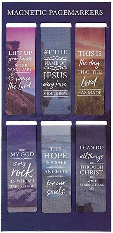 This Lift Up Your Hands Magnetic Bookmark Set displays stunning scenes from nature overlaid by powerful Scripture verses. For any child of God who houses a passion for the outdoors~ these page markers cohesively connect symbolic worshipful phrases with matching images. This set of page markers would add a potent visual to any Bible. Scripture used in this magnetic bookmark set includes: