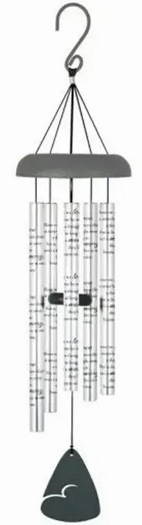 Each chime has an adjustable striker. Tubes are 7/8″ in diameter, sentiment is printed directly onto the tubes. Each tube reads, “Those we love can never be more than a thought away. For as long as there s a memory, they live in our hearts to stay.”
