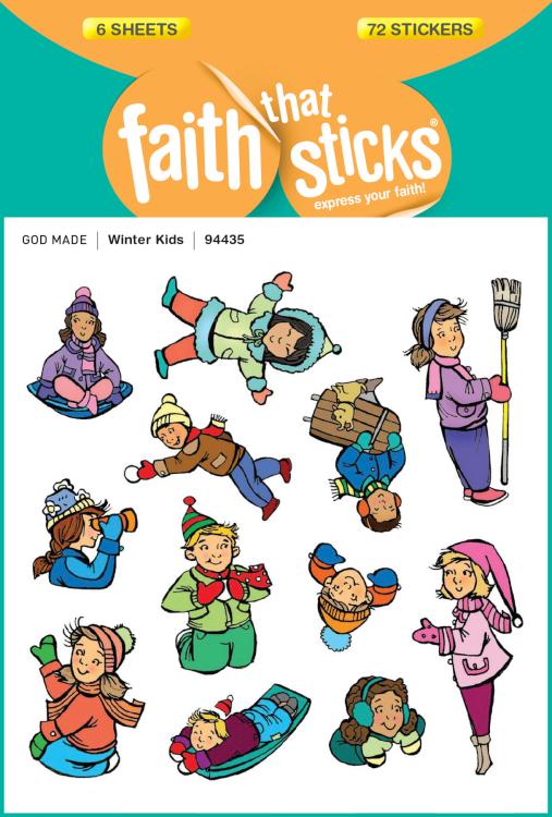 These colorful stickers of boys and girls involved in winter sports and play are great fun for kids. A “cool” resource for Christmas decorations or seasonal crafts, the stickers’ characters are wearing mittens and gloves, throwing snowballs, sledding, and more. Stickers are approximately “-1” x “-1 ” each. Six sheets, 12 stickers per sheet; 72 stickers per package.
