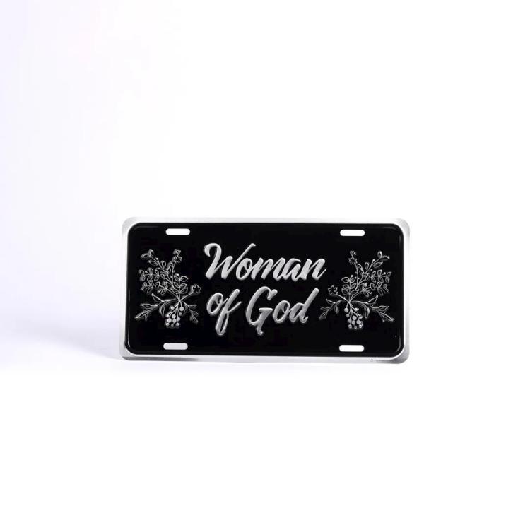 Our deluxe auto tags are created to last, with a heavy gauge aluminum (.025″), embossed design, and a baked enamel finish. Completely rust-proof, won’t peel, chip, or fade, and able to withstand a variety of weather. Compatible with any vehicle model, and easy to Install. 6 x 12 Inches. This design is “Woman of God” in black and silver.