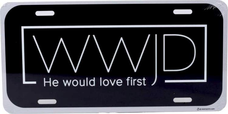 Lead every journey with love and purpose with the WWJD He Would Love First Auto Tag. Featuring a sleek black background and a bold rectangular center design, this tag showcases the iconic WWJD What Would Jesus Do with a powerful reminder at the bottom: He would love first.